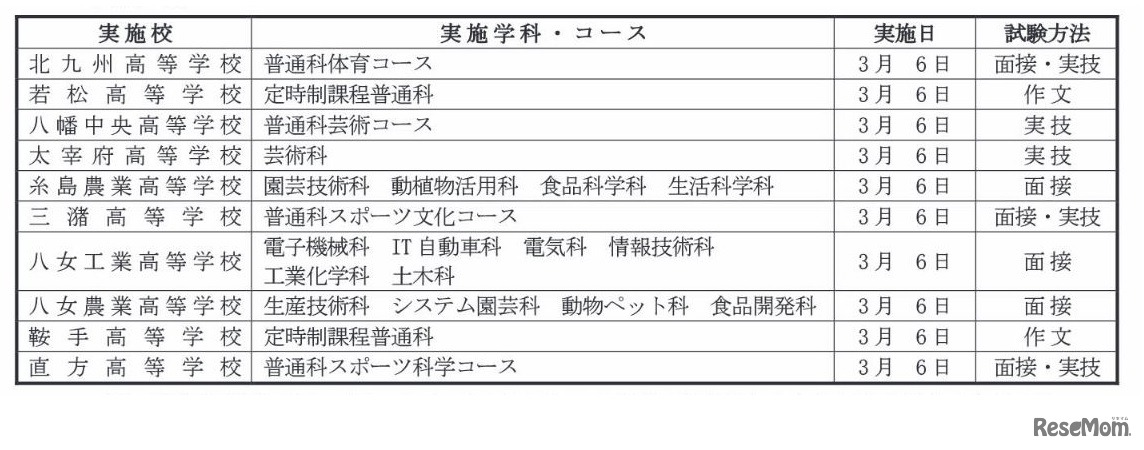 画像出典:福岡県教育委員会 個性重視の特別試験の実施校