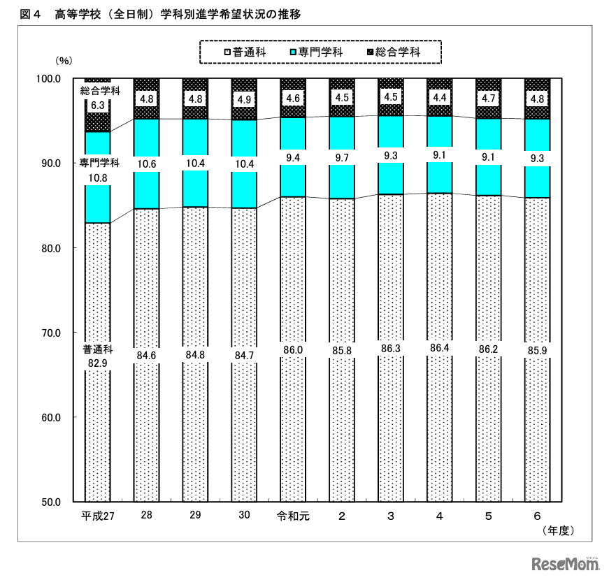 画像出典:神奈川県教育委員会 高等学校(全日制)学科別進学希望状況の推移