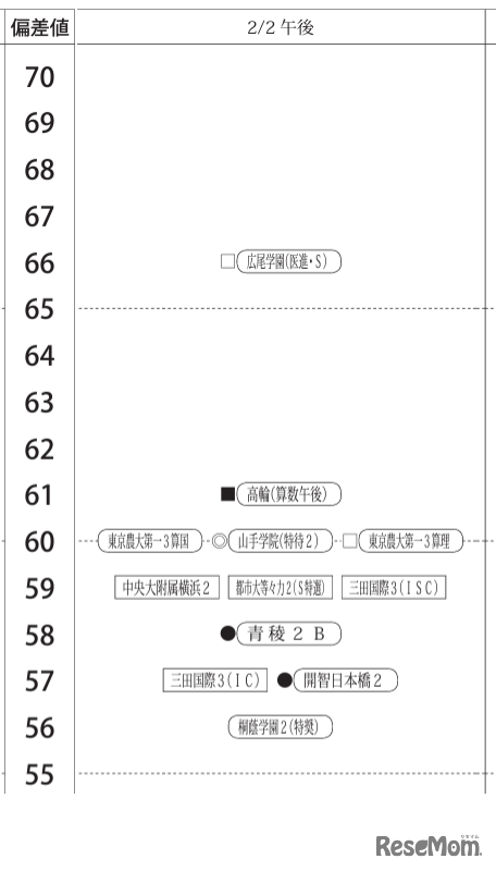 画像出典:四谷大塚「合不合判定テスト(第6回)Aライン80偏差値一覧」 男子2月2日午後