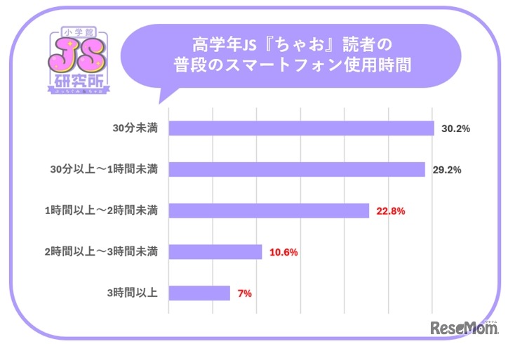 小学館が発行する少女まんが誌「ちゃお」の編集部は、2024年12月号において高学年女子小学生(JS)を対象にした「スマートフォンの使用状況」に関するアンケート調査を実施した。調査結果によれば、スマートフォンを所有する高学年JSは50%を超え、スマートフォンの使用目的としては「友達との連絡」がもっとも多いことが明らかになった。また、YouTubeをほぼ毎日視聴するJSも約50%にのぼるという。