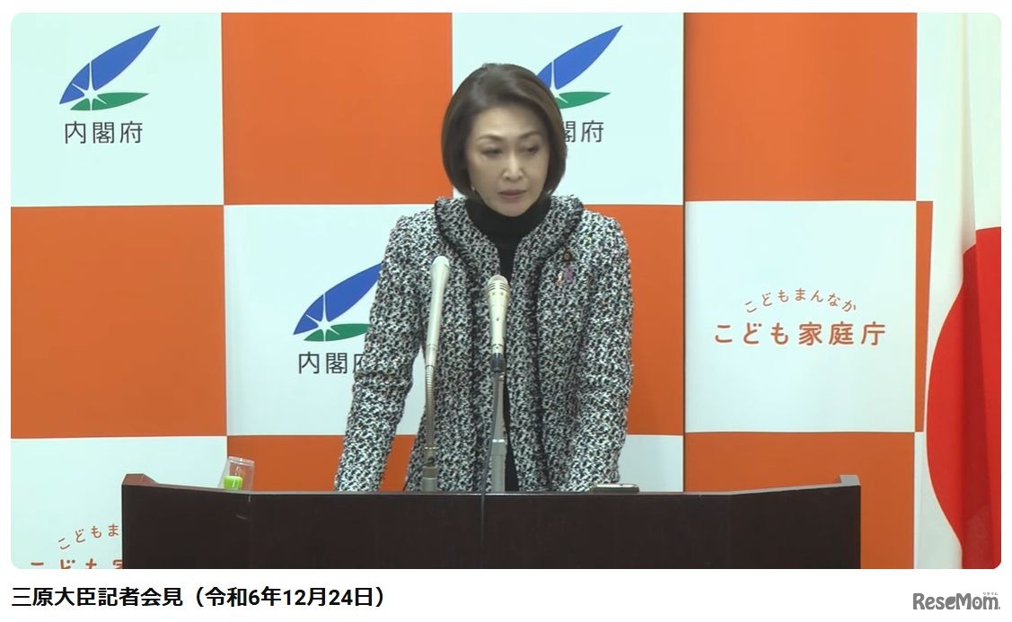 2024年12月24日、三原大臣は記者会見で、児童虐待防止対策の強化を発表した。関係府省庁連絡会議で新たな児童虐待防止対策体制総合強化プランの策定を決定し、2026年度までに児童福祉士を910人増員する計画を示した。また、学童保育の待機児童数が1万7,000人に増加したことを受け、文部科学省と連携して対策を講じる方針を明らかにした。