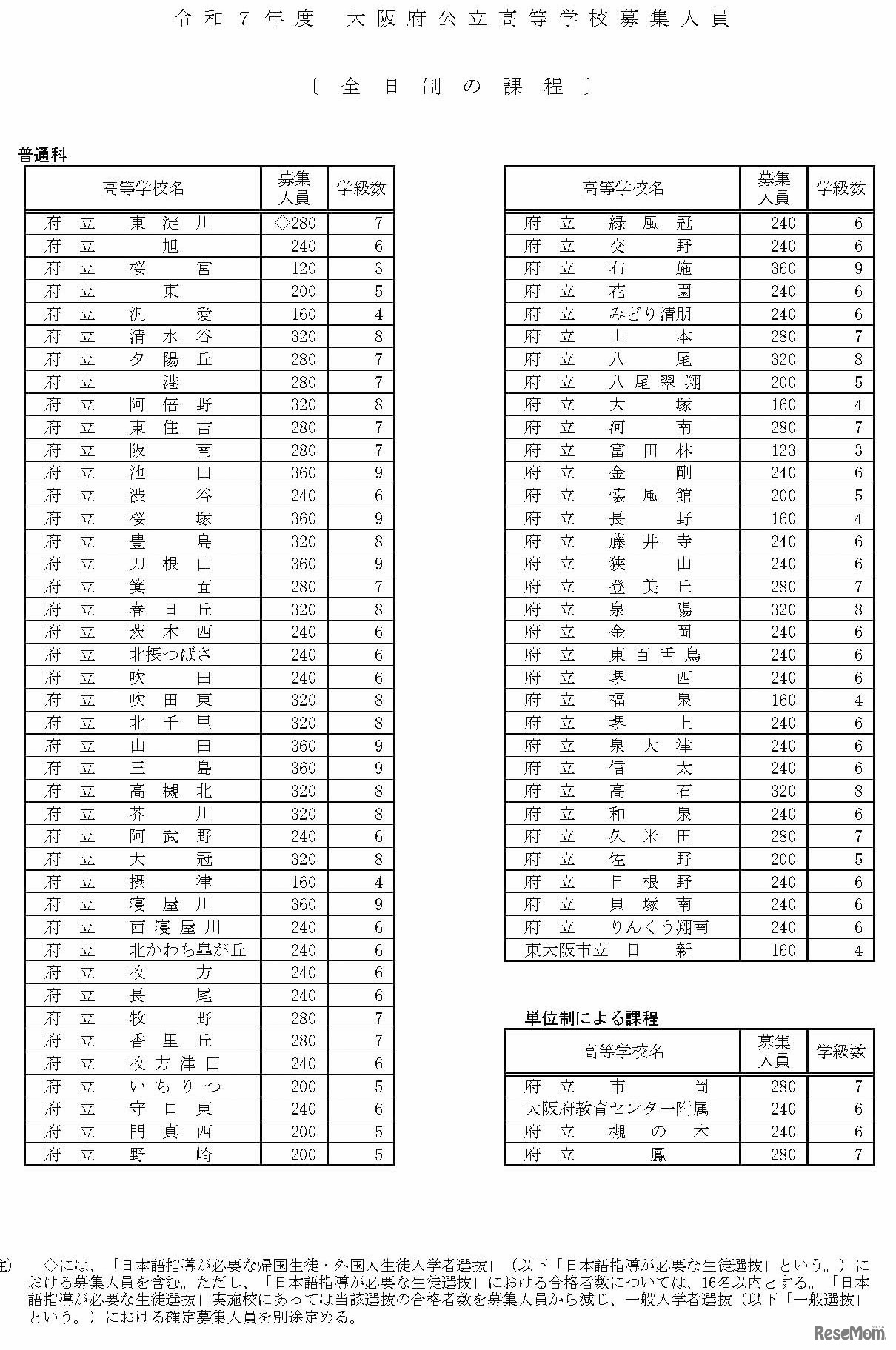大阪府教育委員会は2025年1月31日、2025年度(令和7年度)大阪府公立高等学校の募集人員について、中高一貫校の募集人員が確定したと発表した。確定募集人員は府立富田林(普通)123人、府立水都国際(グローバル探究)82人。