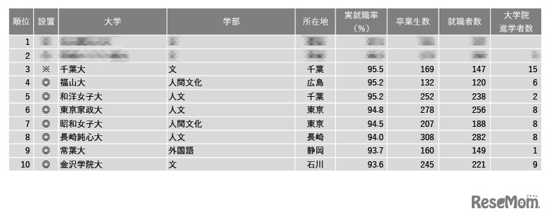 大学通信は2025年2月18日、「2024年学部系統別実就職率ランキング(文・人文・外国語系)」を公開した。3位は千葉大・文学部、4位は福山大・人間文化学部、5位は和洋女子大・人文学部がランクイン。1位・2位は大学通信のWebサイトより確認できる。