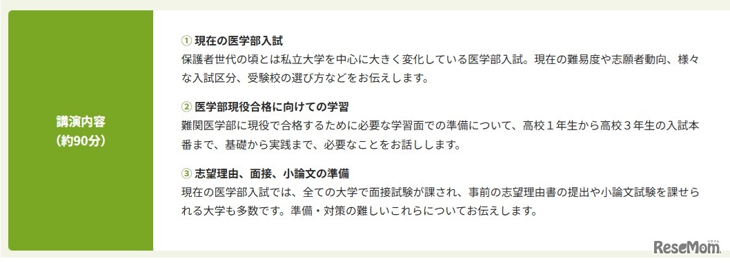 キョーイクは医学部志望の中高生向けに2025年4月と5月に全国で講演会を開催し、入試情報や学習方法を解説する。参加は無料で、資料も配布される。