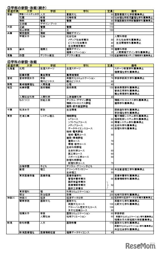 2026年度新設大学・増設学部・学科一覧