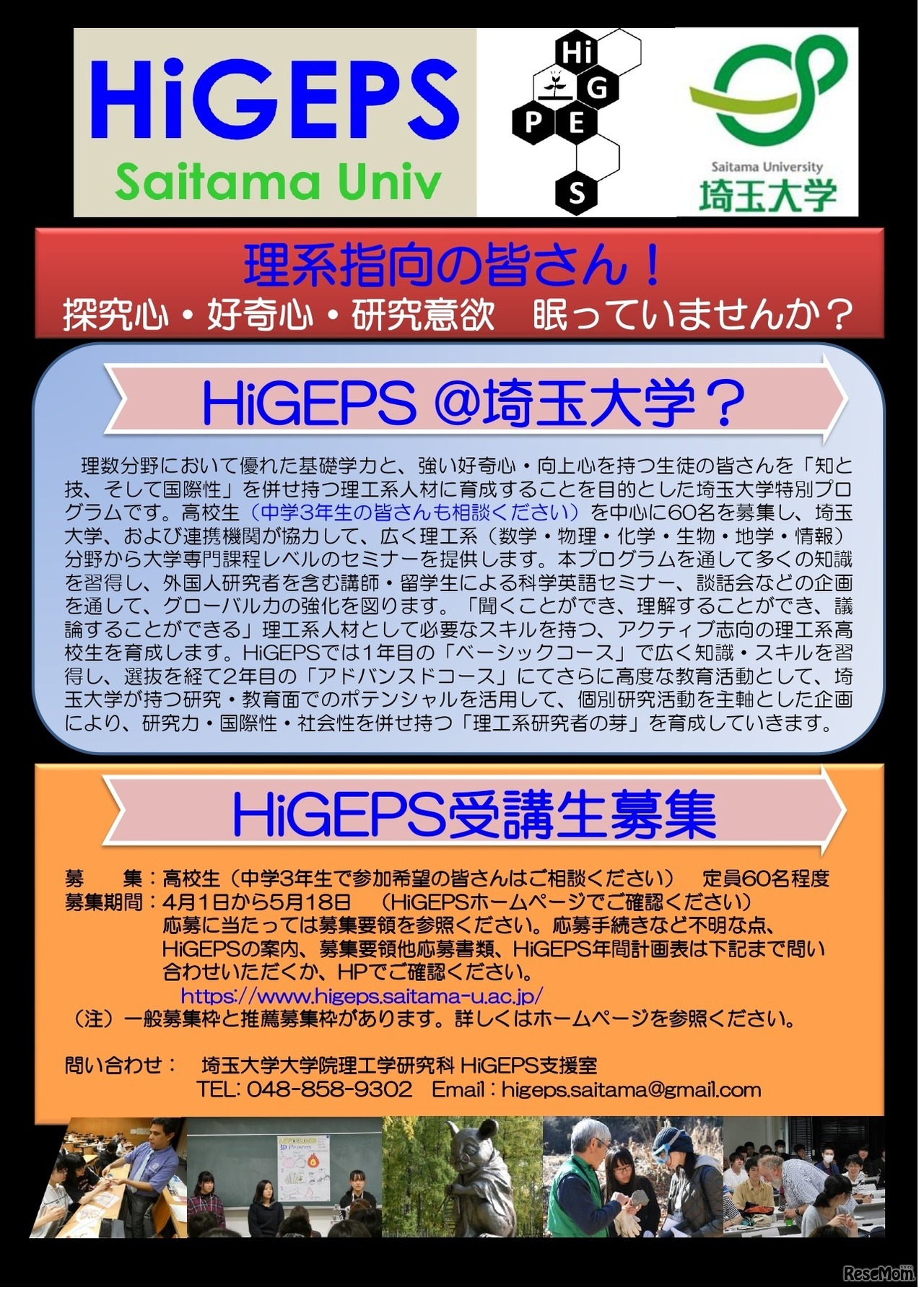 埼玉大、高校生向け教育プログラム「HiGEPS」募集 2枚目の写真・画像