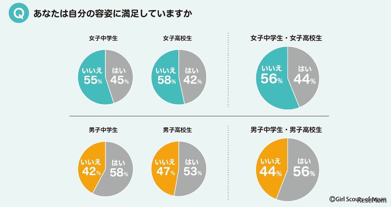 自分の容姿に満足しているか (c) Girl Scouts of Japan