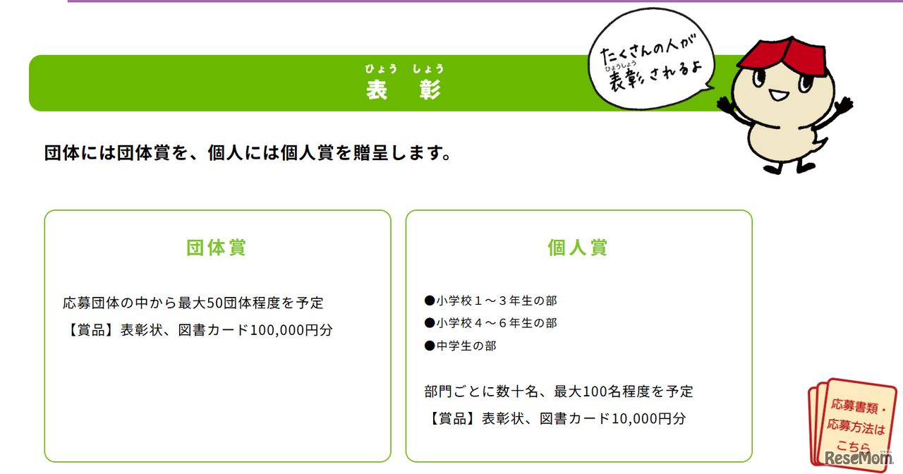 博報堂教育財団が主催する小中学生対象の「お気に入りの一冊をあなたへ 読書推せん文コンクール」の募集が2025年5月1日に始まった。お気に入りの本・マンガ・図鑑・絵本などを誰かにすすめる「読書推せん文」を募集。団体・個人応募ともに可能で、優秀作品には表彰状と図書カードが贈られる。