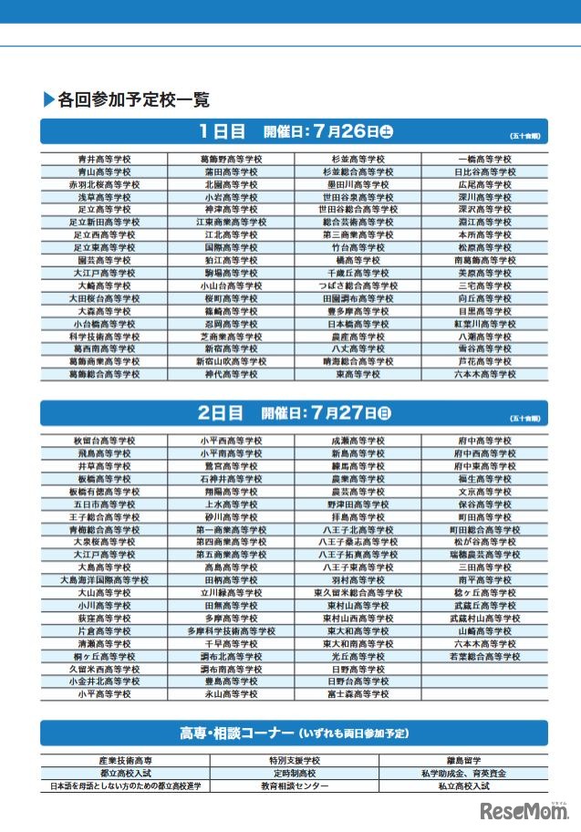 東京都教育委員会は2025年5月8日、これまで秋に開催していた「都立高等学校合同説明会」をリニューアルし、都立高校の魅力や特色を発信するイベント「都立高校EXPO」として夏に開くと発表した。第1部を7月26、27日、第2部を8月9、10日、工科高校フェスタを7月27日に開催する。