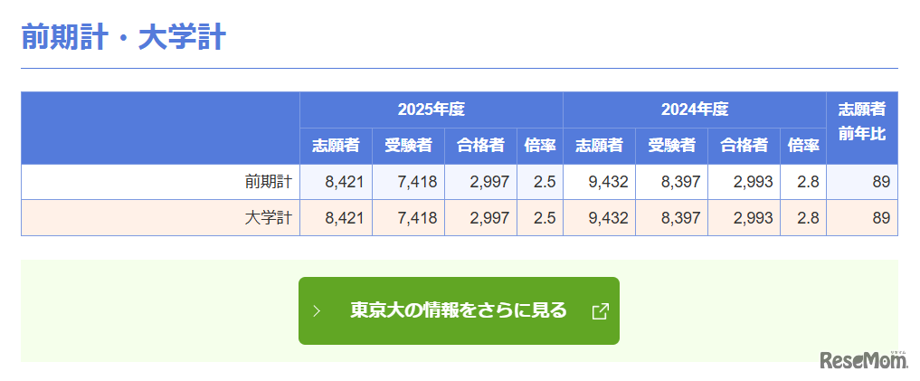 画像出典:河合塾の大学入試情報サイト「Kei-Net」 東京大学