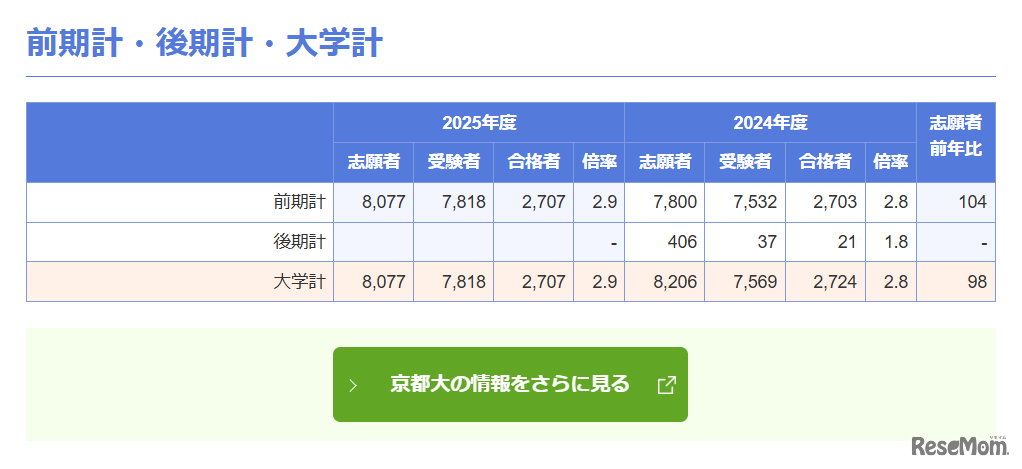 画像出典:河合塾の大学入試情報サイト「Kei-Net」 京都大学