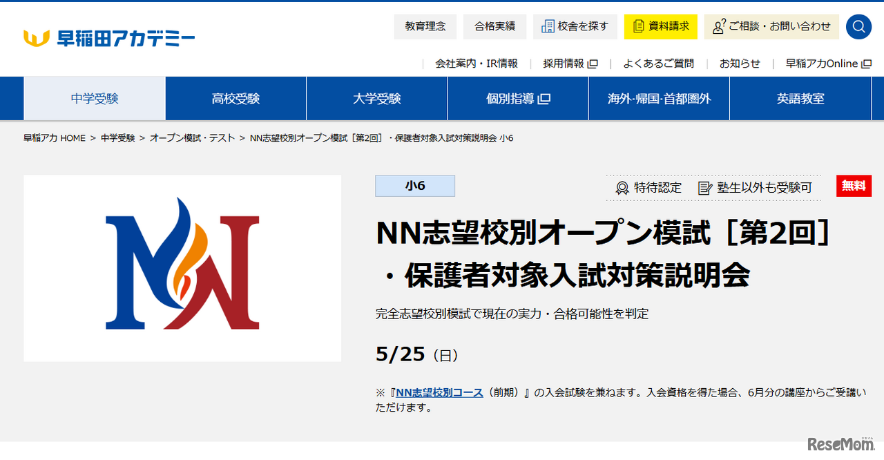 【中学受験】早稲アカ、小6「NN志望校別オープン模試」5/25 1枚目の写真・画像