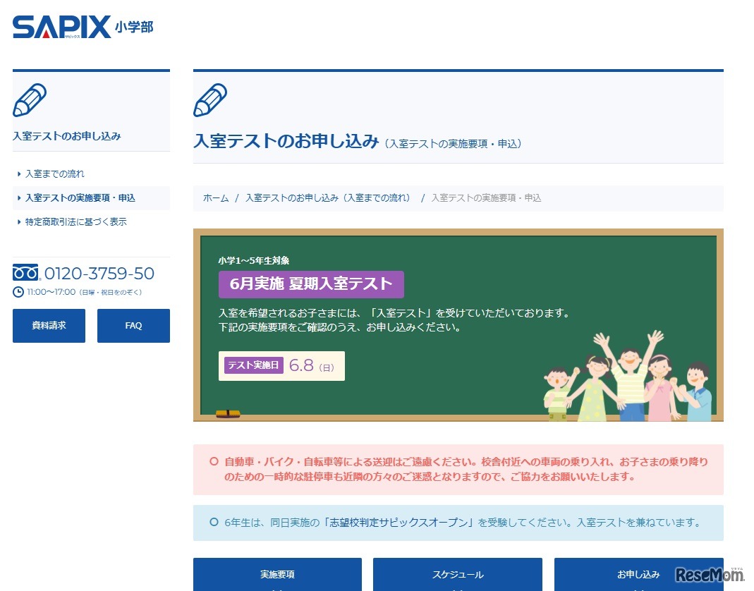 SAPIX小学部は、小学1~5年生を対象とした夏期入室テストを2025年6月8日に首都圏・関西圏の各校舎で開催する。申込受付は5月19日午前10時より開始、6月7日午後3時まで。費用は3,300円(税込)。