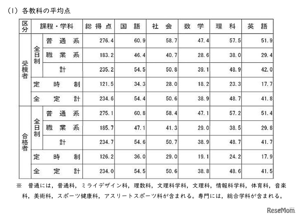 画像出典:鹿児島県教育委員会「令和7年度鹿児島県公立高等学校入学者選抜学力検査結果の概要」 各教科の平均点