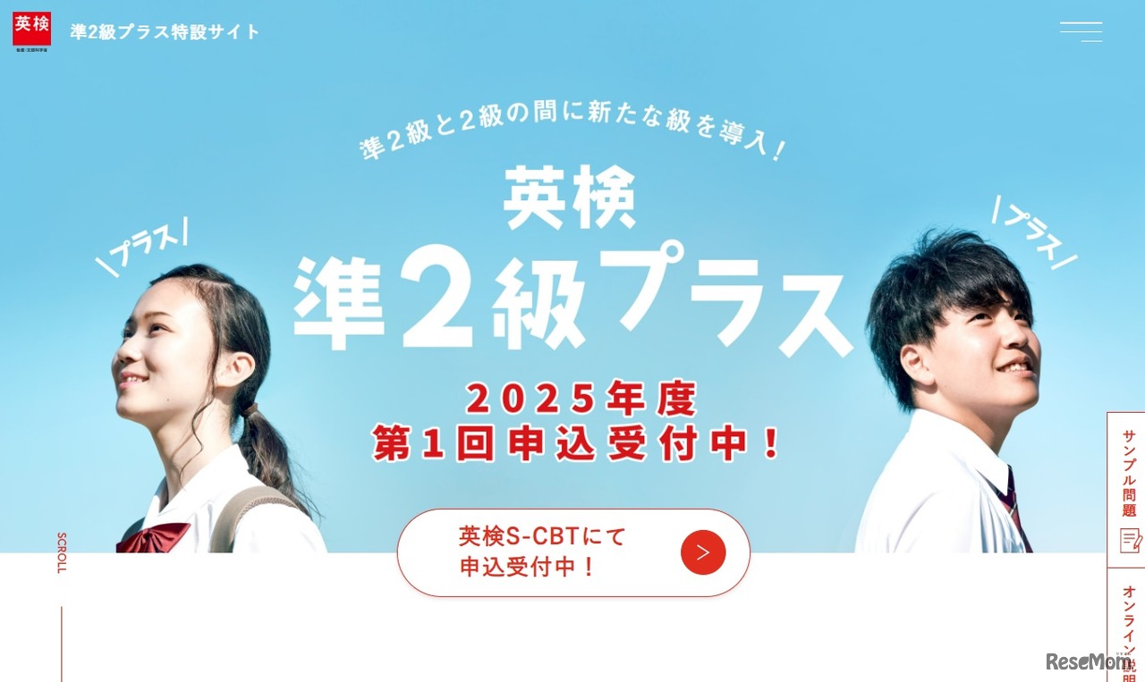 日本英語検定協会は2025年5月2日、「英検準2級プラス」の受験者は「2級」や「準2級」とのダブル受験者が多い傾向があると発表した。