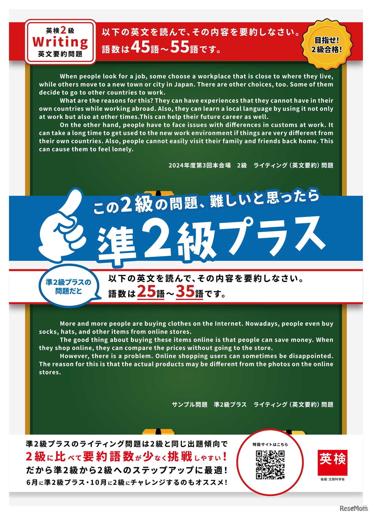 日本英語検定協会は2025年5月2日、「英検準2級プラス」の受験者は「2級」や「準2級」とのダブル受験者が多い傾向があると発表した。