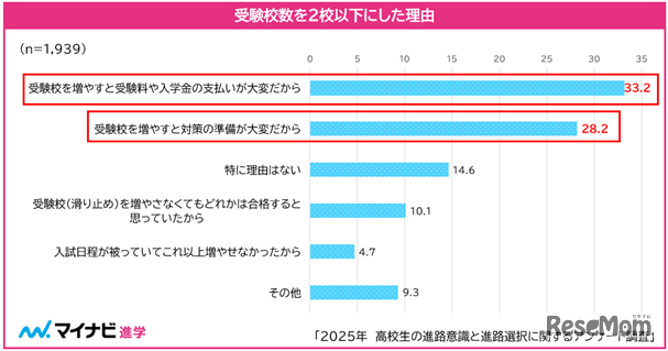 マイナビは、2025年卒業の全国の高校生を対象に実施した「2025年 高校生の進路意識と進路選択に関するアンケート調査」の結果を発表した。高校生が大学選びで重視するのは「学べる内容」が5年連続で最多であり、受験校数は平均1.94校で2年連続2校以下となった。