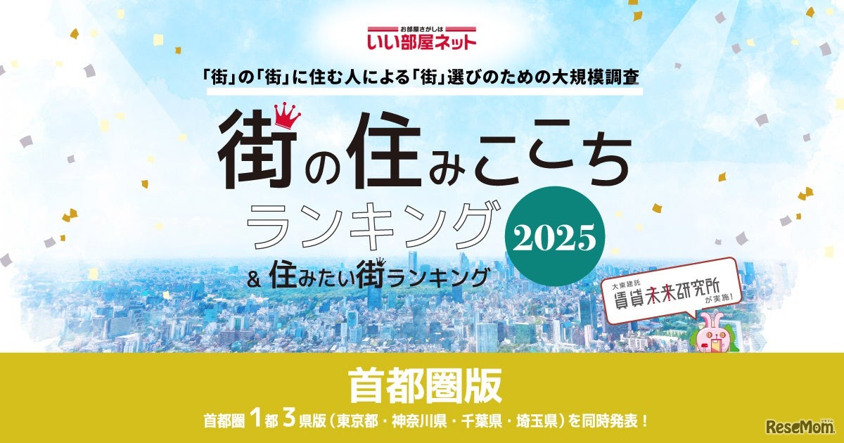 大東建託は、過去最大級の居住満足度調査を実施し、「いい部屋ネット 住みたい街ランキング2025<首都圏版>」を発表した。調査結果によると、住みたい街(駅)ランキングでは、東京都武蔵野市の吉祥寺が7年連続で1位を獲得した。