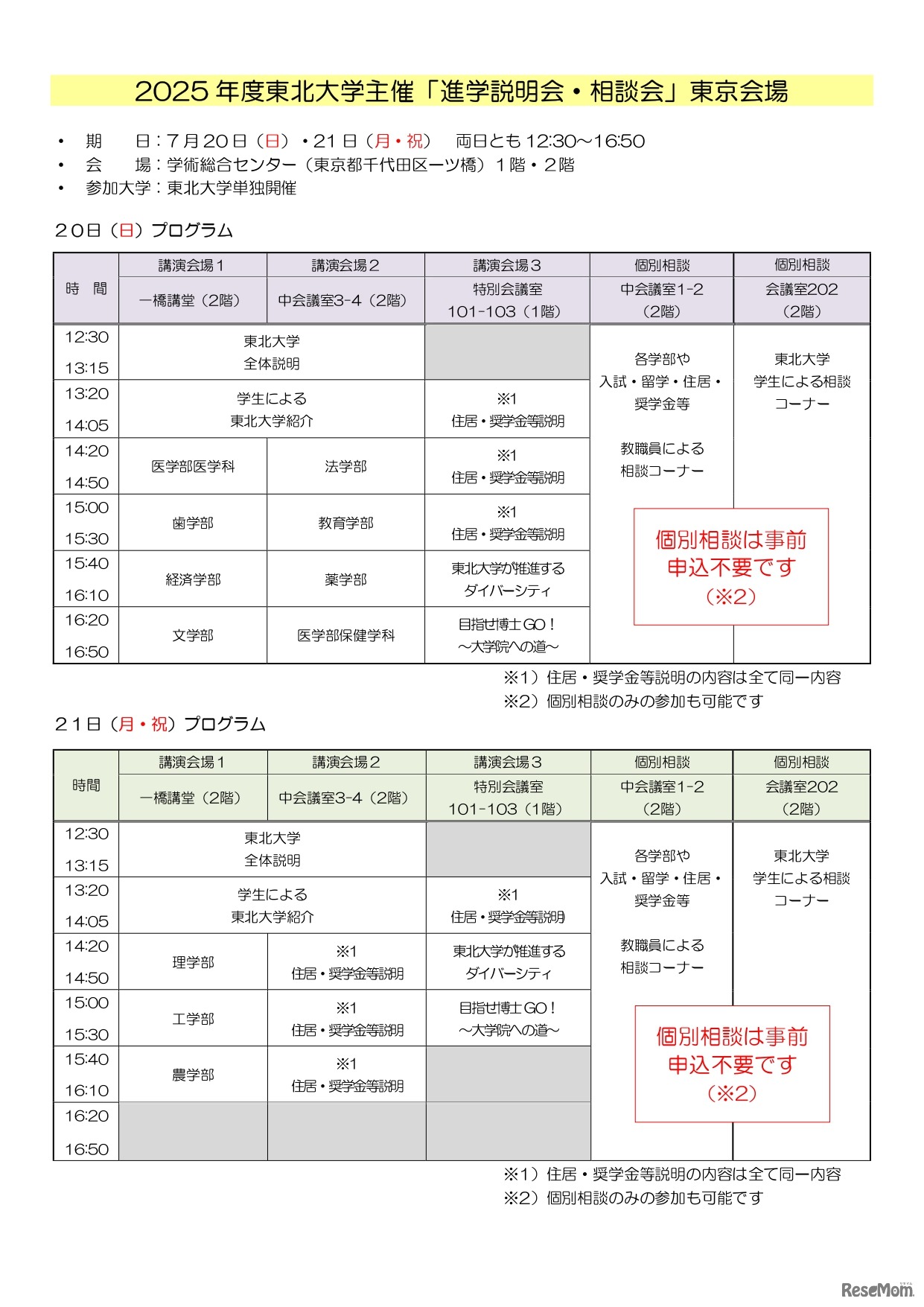 2025年度東北大学主催 進学説明会・相談会(東京会場)