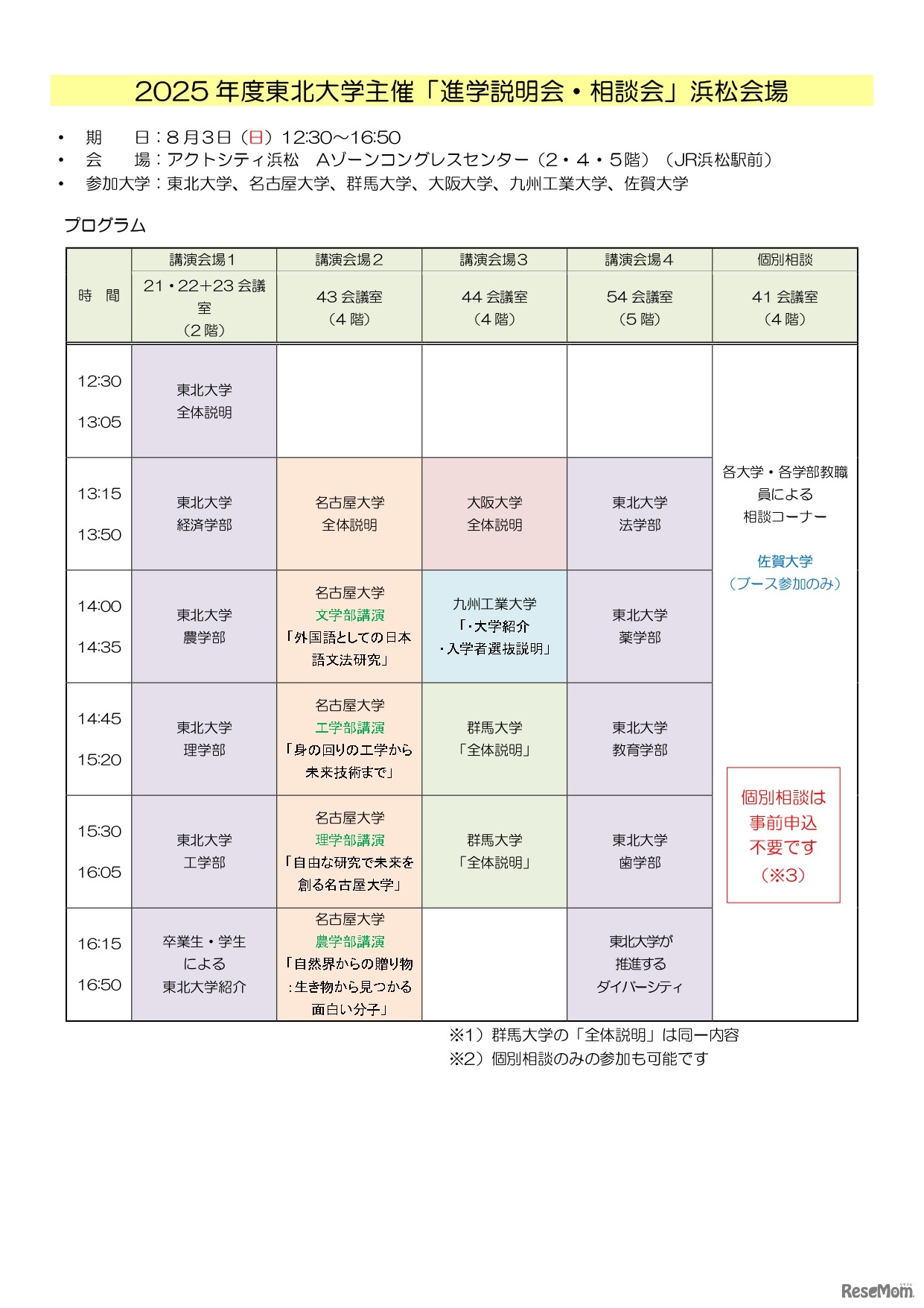 東北大学は、同学を含めた9大学による「2025年度東北大学主催 進学説明会・相談会」を全国5都市で開催する。参加大学は、東北大学・大阪大学・名古屋大学・弘前大学・茨城大学・群馬大学・広島大学・佐賀大学・九州工業大学。