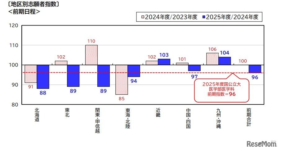 駿台は2025年5月7日、2025年度国公立大入試状況分析を更新し、医学部医学科の志願状況について掲載した。一般選抜全体の志願者数は、前期・後期いずれもやや減少。志願倍率も、前期(前年度比0.16ポイント減)、後期(同0.90ポイント減)ともに微減したことがわかった。