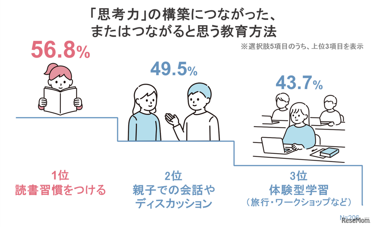 Amazonは2025年4月、偏差値60以上のいわゆる「難関中学校」に通うまたは通っていた子供を持つと申告した保護者206名を対象に「子供の教育に関するアンケート調査」を実施した。調査の結果、半数以上が「思考力」と「コミュニケーション能力」を最重視していることがわかった。