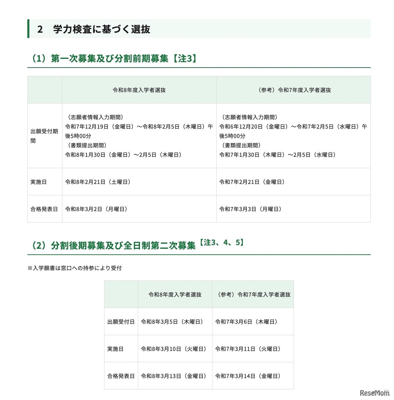 画像出典:東京都教育委員会「令和8年度東京都立高等学校入学者選抜の日程」 学力検査に基づく選抜