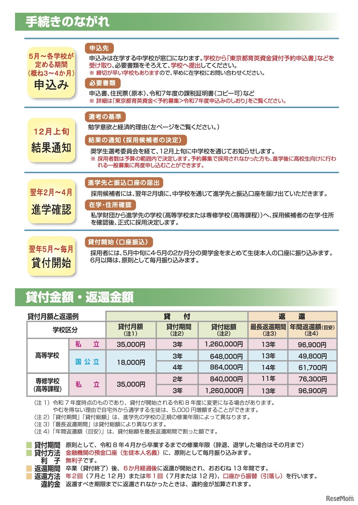 画像出典:東京都私学財団 手続きの流れ、貸付金額など