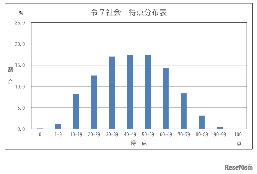 学力検査の得点分布表(社会)