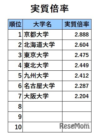 画像:代々木ゼミナール「2025年度入試結果」などを参考にリセマム編集部が作成 旧7帝大人気ランキング2025「実質倍率」