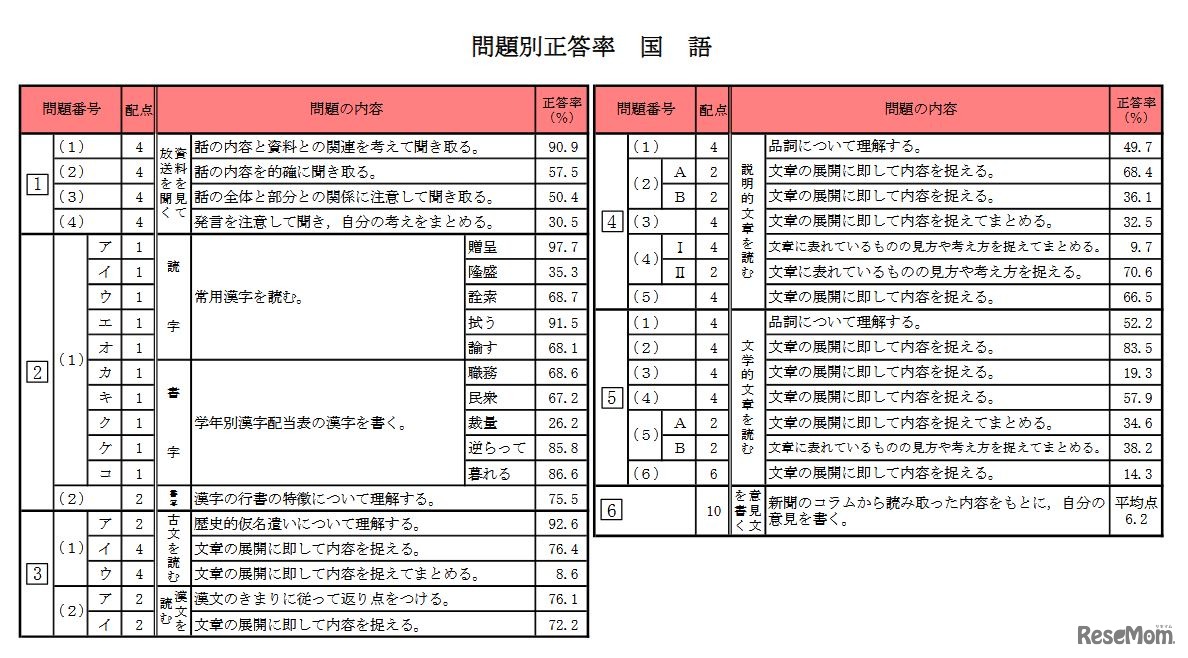 画像出典:青森県教育委員会 問題別正答率(国語)