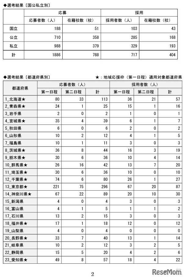 国公私立別・都道府県別採用者数