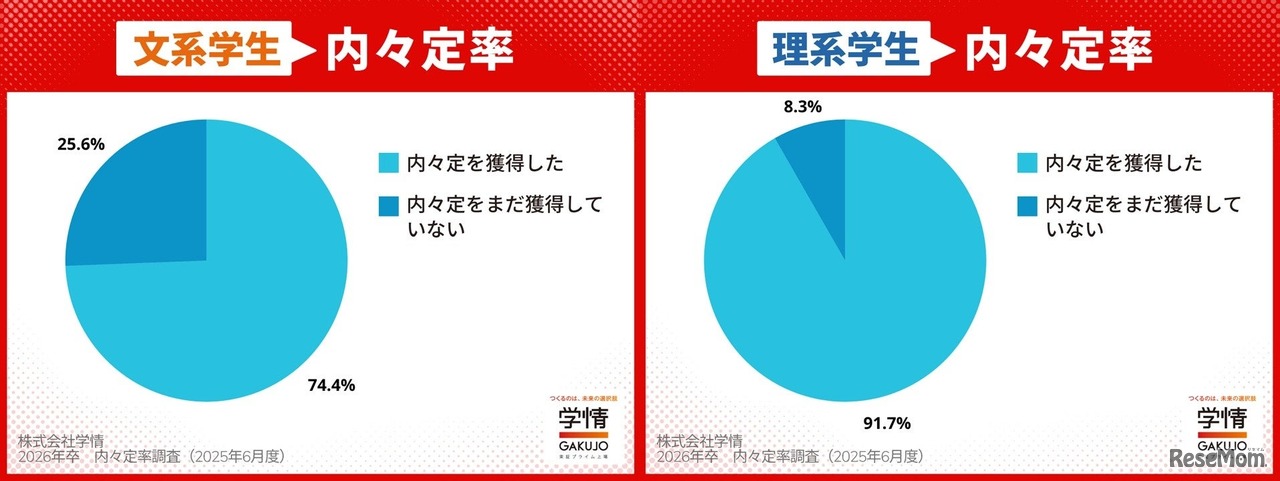 画像出典:学情 文系・理系の内々定率(2025年5月末)
