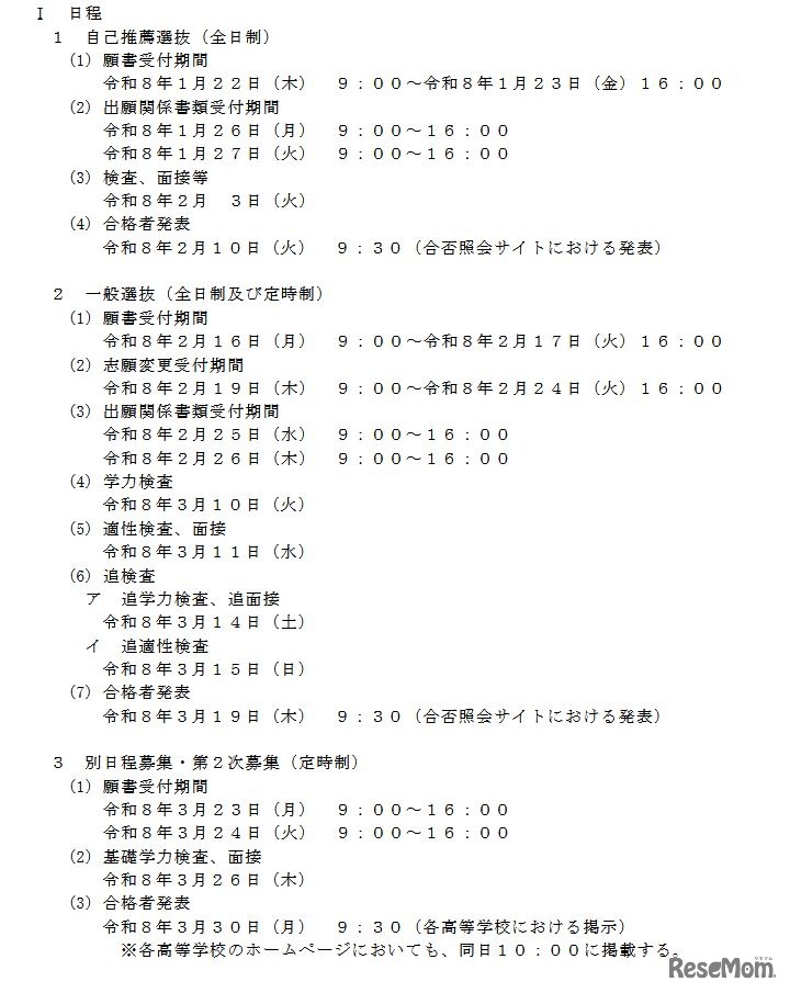 香川県教育委員会は2025年6月6日、2026年度(令和8年度)香川県公立高等学校入学者選抜から、全国募集を含む自己推薦選抜と一般選抜においてインターネット出願システムを導入すると発表した。自己推薦選抜の検査は2026年2月3日、一般選抜の学力検査は3月10日に行われる。