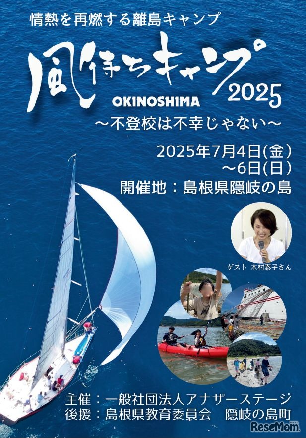 アナザーステージは、2025年7月4日から6日までの3日間、島根県隠岐の島で「風待ちキャンプ2025」を開催する。このキャンプは、不登校の子供とその保護者を対象としており、親子での参加が求められる。