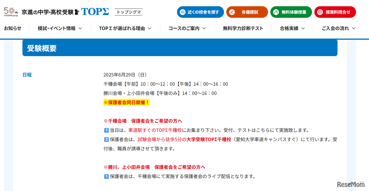 京都・滋賀・愛知を中心に学習塾を展開する京進は2025年6月29日、愛知県立明和高等学校附属中学校の入試に向けた公開模試「明和高附属中模試」を実施する。対象は小学5年生と6年生で、会場は「京進の中学・高校受験TOPΣ(以下、TOPΣ)」の千種校、勝川校、上小田井校の3校。参加料無料。