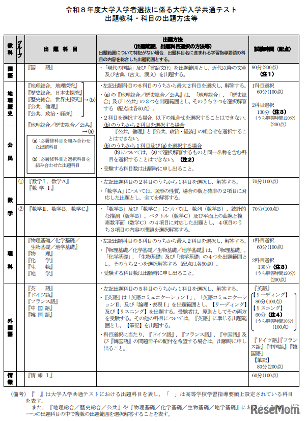 令和8年度(2026年度)大学入学者選抜に係る大学入学共通テスト(旧センター試験)実施期日は2026年(令和8年)1月17日(土)および18日(日)。