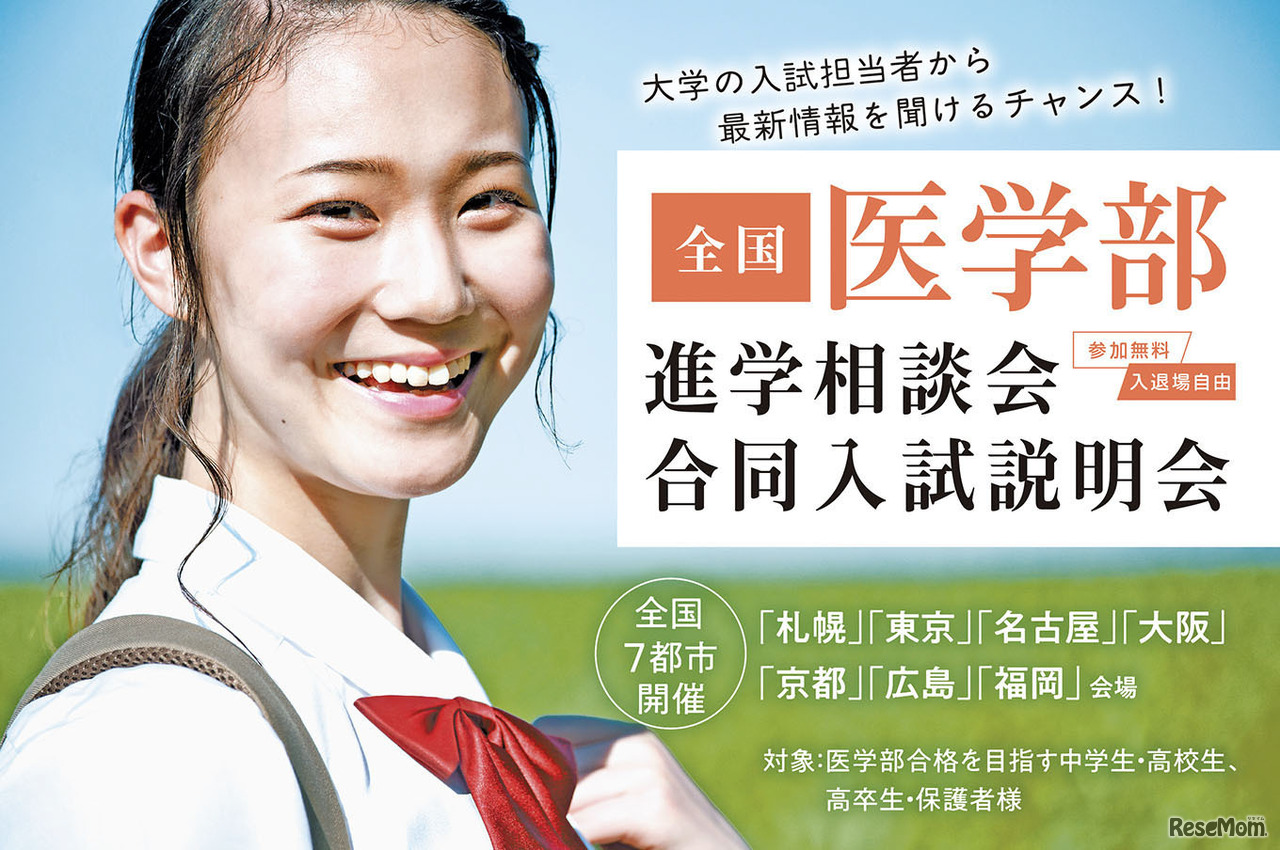 河合塾グループの医系専門予備校メディカルラボは、2025年も全国7都市(札幌・東京・名古屋・大阪・京都・広島・福岡)にて、医学部進学相談会・合同入試説明会を開催する。