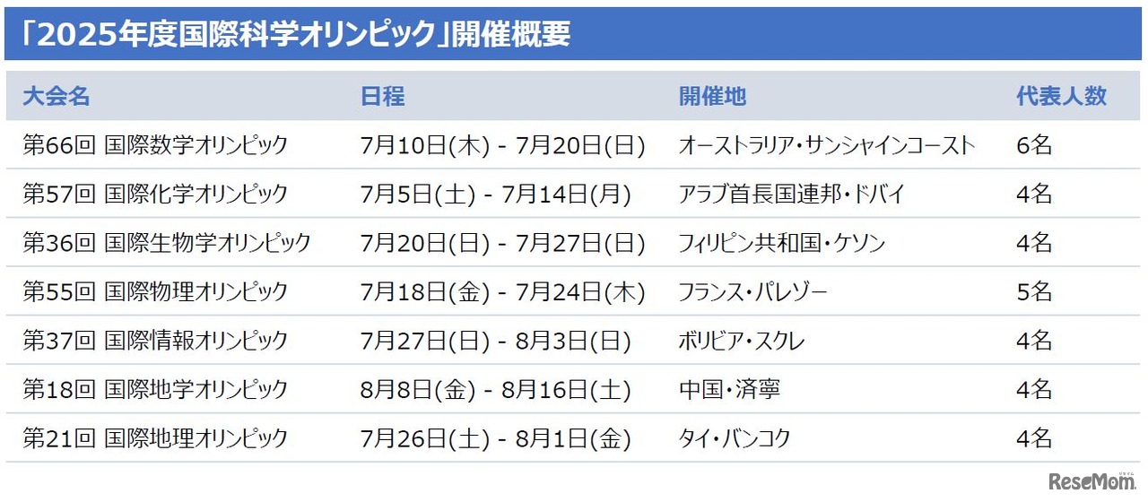 2025年度国際科学オリンピックの日本代表31名が決定した。科学技術振興機構が主催するこの大会は、中学・高校生が科学技術に関する知識や問題解決能力を競う国際的なコンテスト。日本では7つの教科・科目において国内大会が開催され、選抜された生徒たちが国際大会に派遣される。