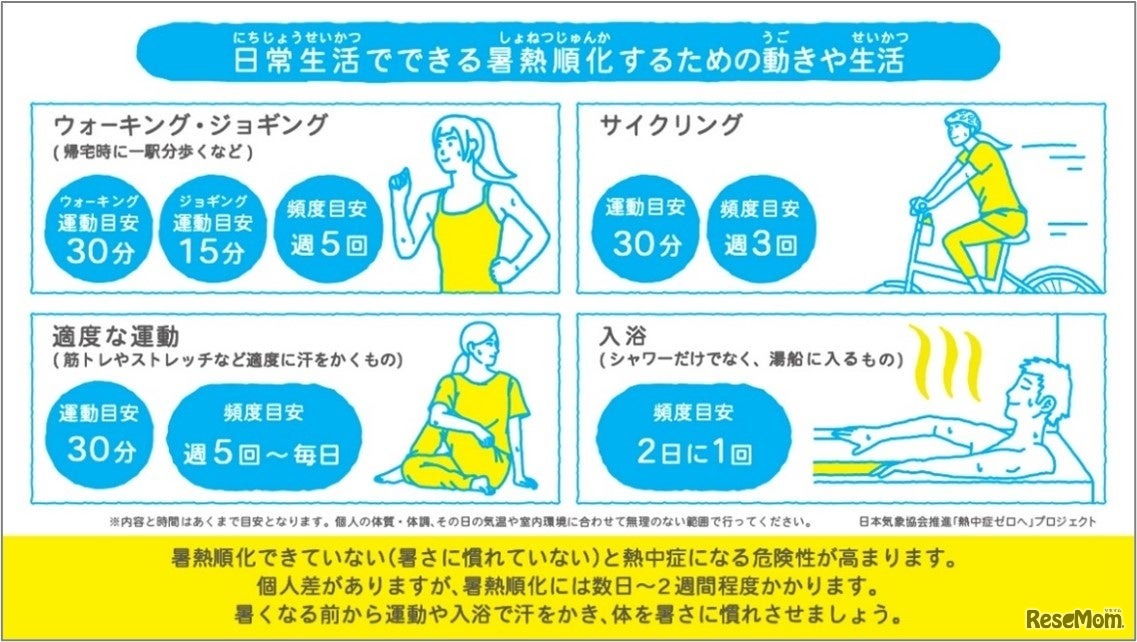 日本気象協会が推進する「熱中症ゼロへ」プロジェクトは、暑さに慣れることの重要性を広めるため、暑熱順化のタイミングを示す「暑熱順化前線」を発表した。