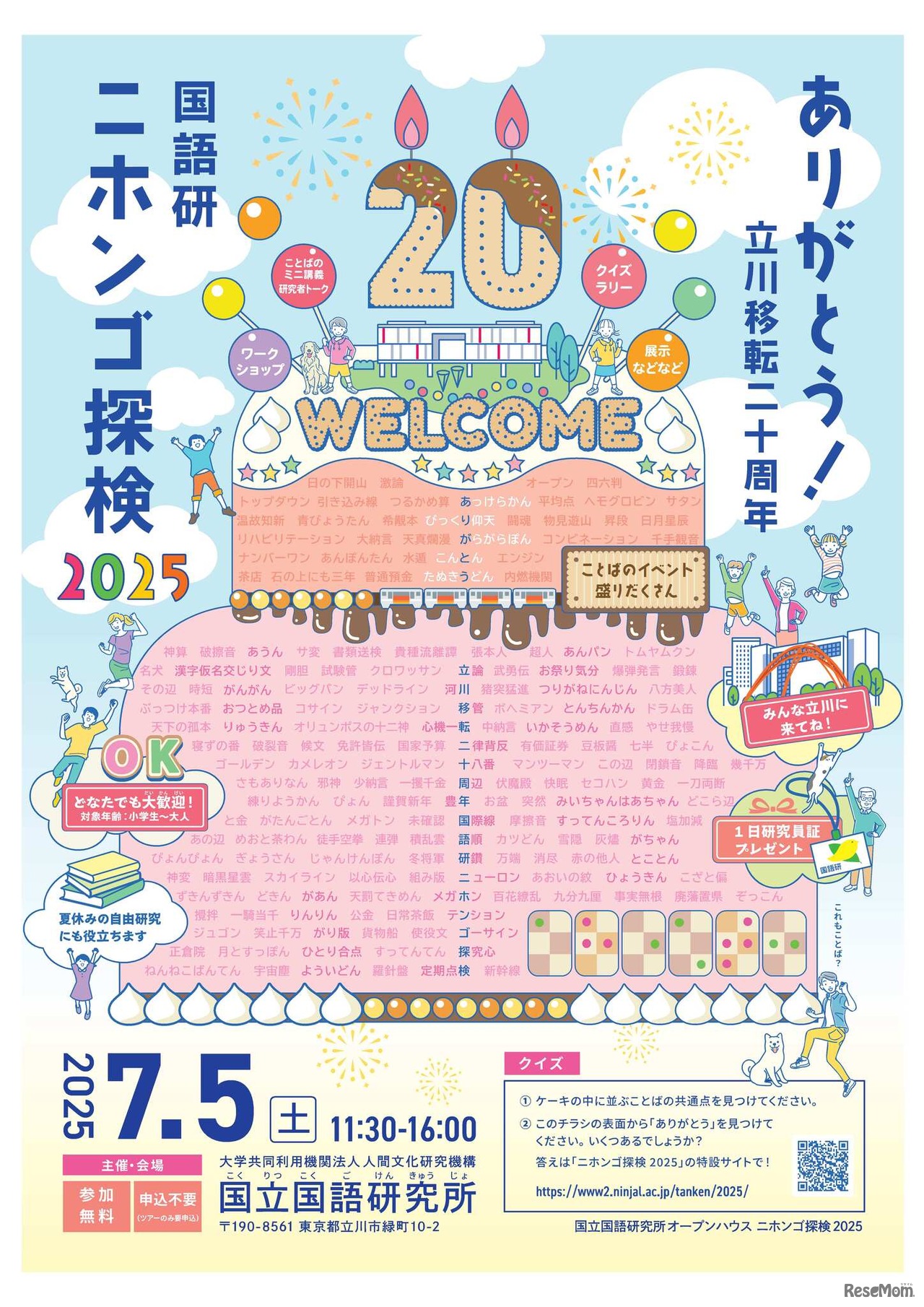 国立国語研究所は2025年7月5日、一般公開イベント「ニホンゴ探検2025」を開催する。子供向けから大人向けまでさまざまなプログラムを通じて、ことばの不思議や魅力を伝える。参加費無料、申込不要。図書館・資料館ツアーのみ要事前申込。
