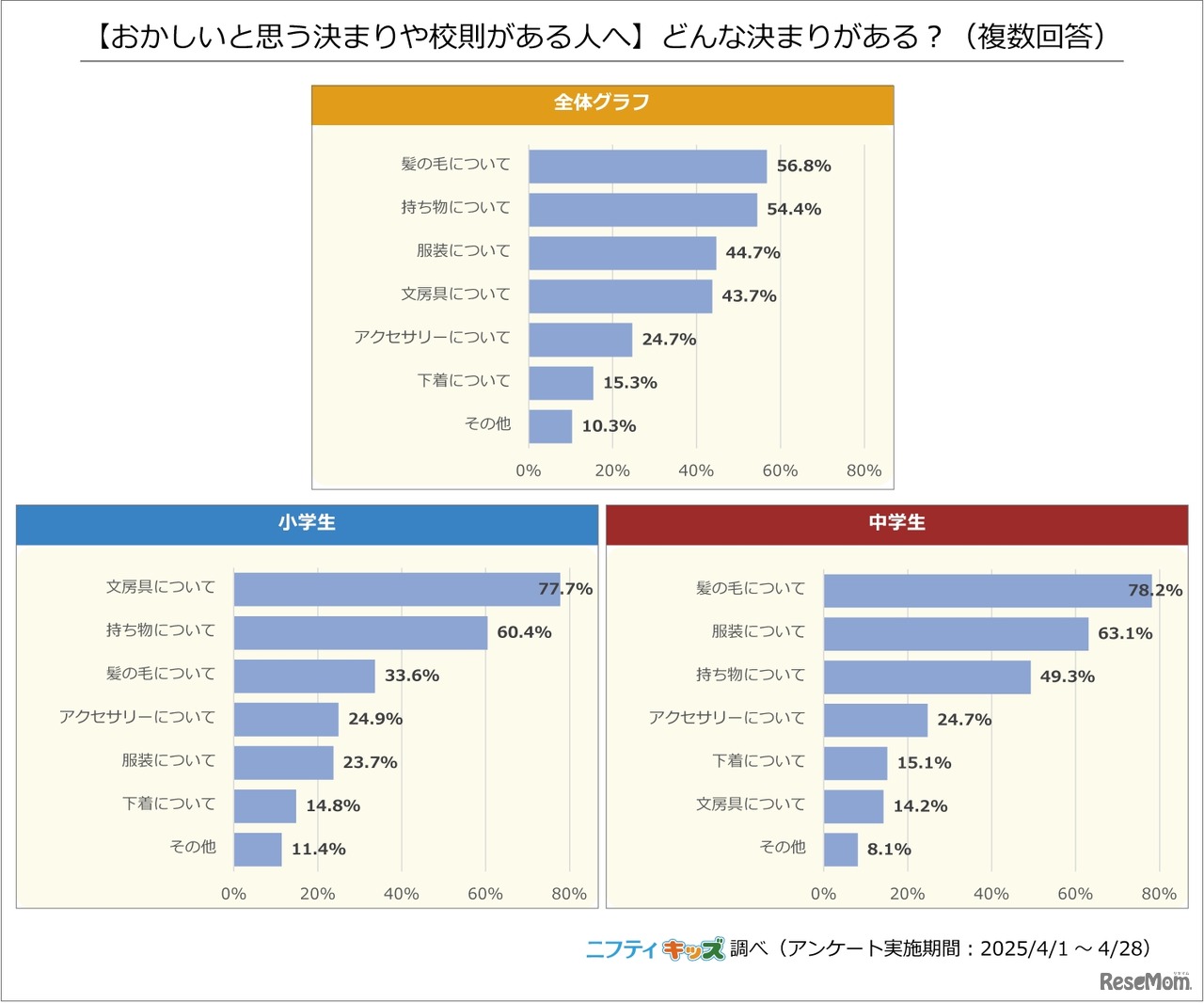 ニフティは、運営する子供向けWebサイト「ニフティキッズ」にて、校則に関するアンケート調査を実施し、2025年6月12日にレポートを公開した。