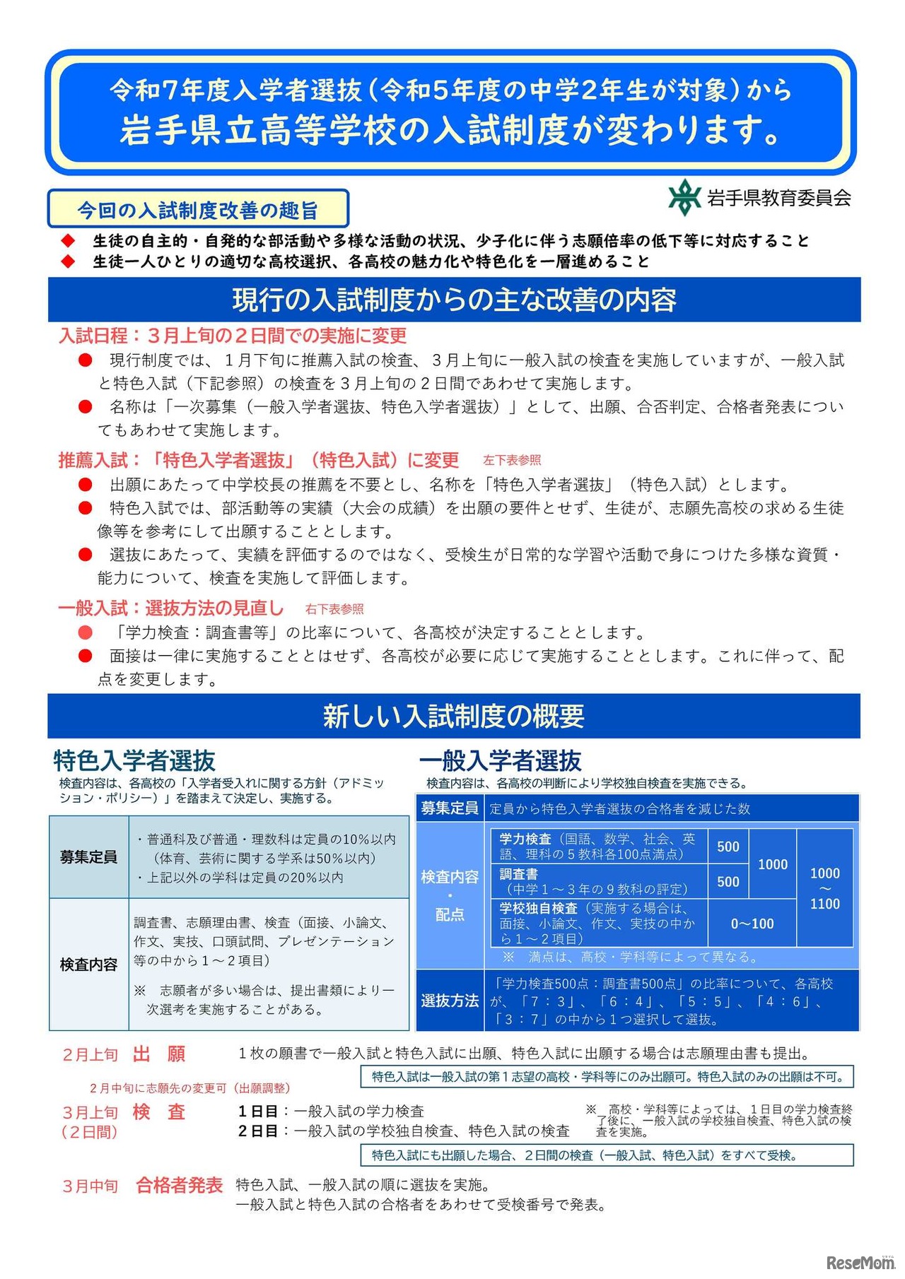 画像出典:岩手県教育委員会 新しい入試制度の概要や変更点など