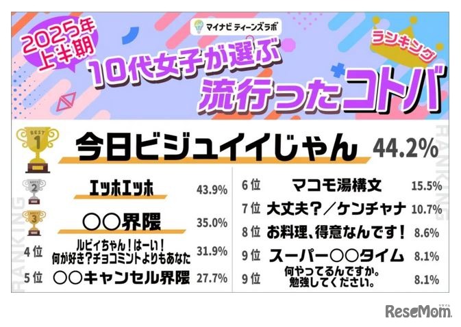 マイナビが運営する「マイナビティーンズラボ」は2025年6月11日、「2025年上半期のトレンドランキング」を発表した。M!LKの「イイじゃん」がウタ部門で1位を獲得し、サビの「今日ビジュイイじゃん」というフレーズはコトバ部門でも1位に輝いた。