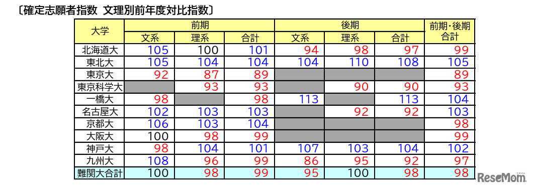 画像提供:駿台予備学校 難関国立10大学志願状況〔確定志願者指数 分野別前年度対比指数〕