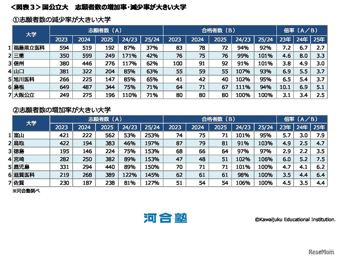 国公立大 志願者数の増加率・減少率が大きい大学 (c) Kawaijuku Educational Institution.