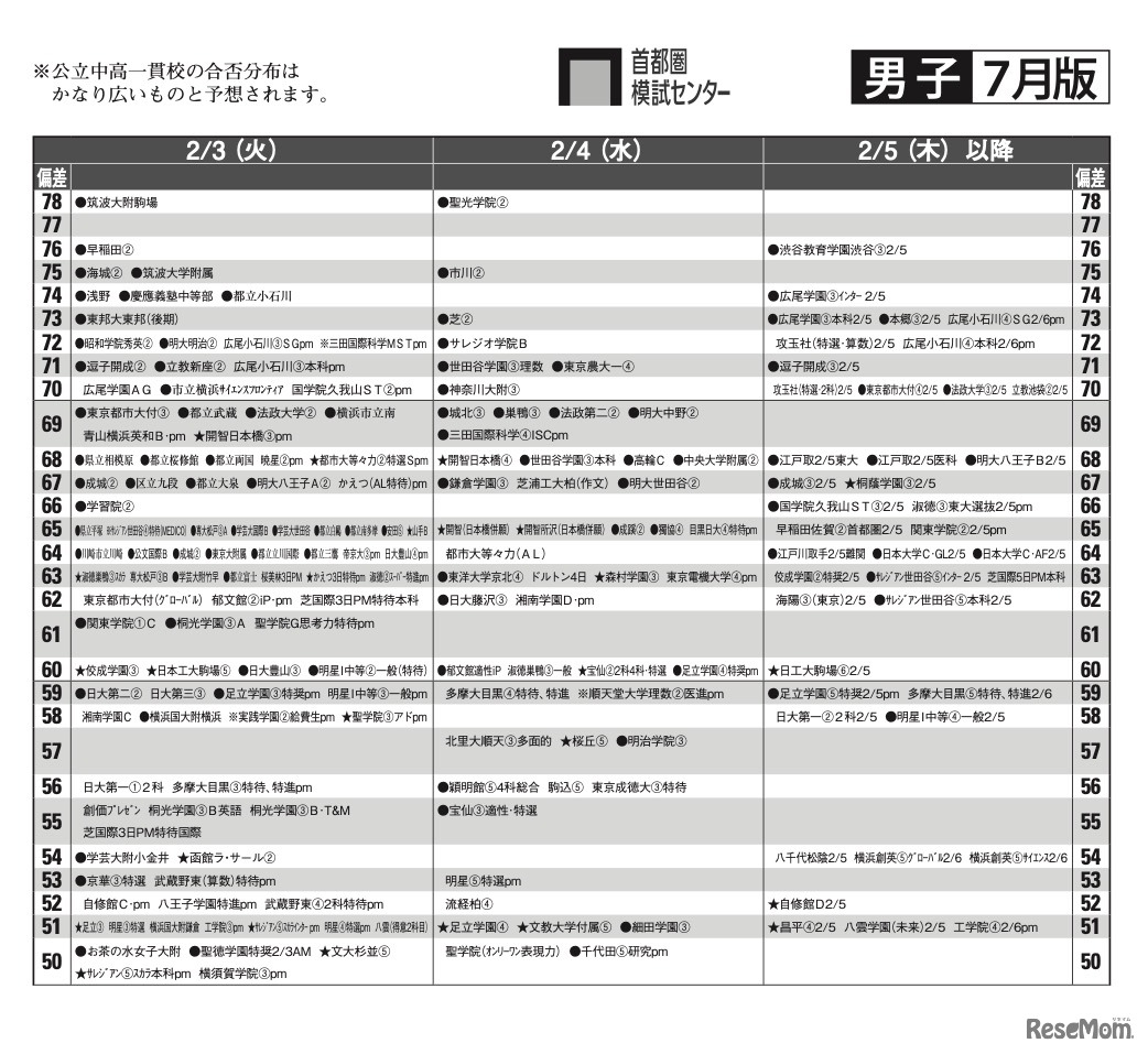 画像出典:首都圏模試センター 予想偏差値7月版(男子・2月3日以降)