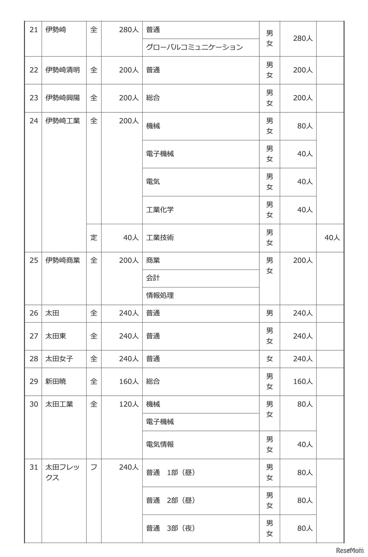 画像出典:群馬県教育委員会 令和8年度 群馬県公立高等学校生徒募集定員一覧表