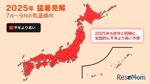 ウェザーニューズは2025年6月24日、「猛暑見解2025」を発表した。特に、7月末~8月前半にかけて暑さのピークが予想され、太平洋高気圧とチベット高気圧が重なる「ダブル高気圧」が発生した場合、35度を超える猛暑日が続く見込み。地域によっては40度前後に達する「酷暑」となるため、厳重な警戒が必要だ。
