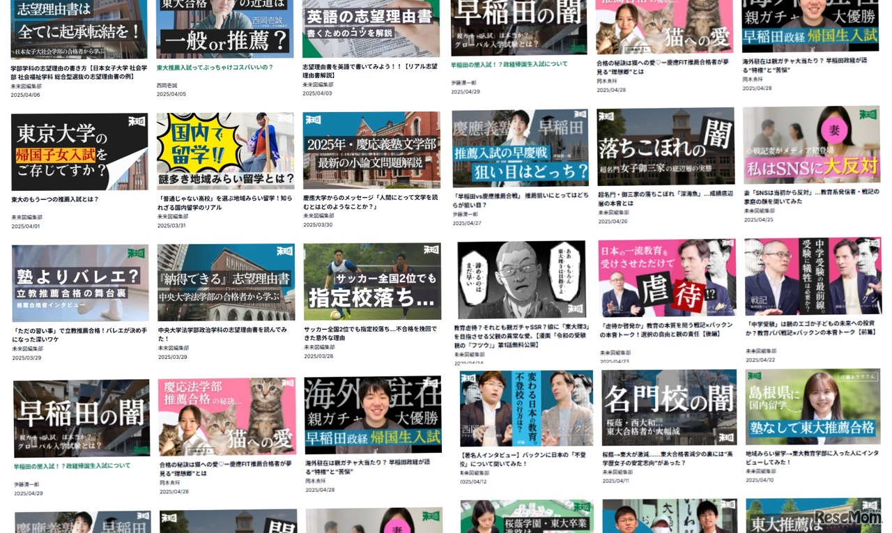 総合型選抜入試対策を中心とするオンライン予備校事業を展開し、推薦入試専門メディア「未来図」を運営するリザプロは、日本の主要大学の推薦入試情報を網羅的に集約した「推薦入試データベース」を2025年6月25日にリリースした。
